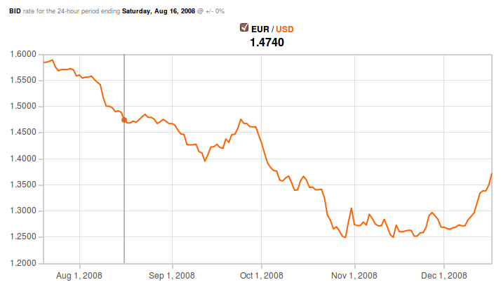 То есть денежная масса "живет" сама по себе? Под денежной массой я имею в виду наличные банкноты и цифры на счетах. Но ведь деньги возникли для регулирования товарооборота. И как я понимаю их количество в обороте должно соответствовать всей совокупности стоимостей всех товаров и услуг. Или я что-то путаю? Так и есть, денежная масса живет своей жизнью и иногда становится зверем. Если Вы помните в октябре 2008 г. Полсон ползал перед конгресом умоляя выделить 0.7 трлн. $. К началу октября сокращение денежной массы долларов из-за прекращения кредитования грозило перерасти в коллапс финансовой системы выражающийся в исчезновении из оборота наличных долларов и обесценении всех залогов. Тут требуется пояснение: - каждому кредитному договору противостоит договор залога и в случае нарушения заемщиком графика погашения залог по договору подлежит продаже за те же доллары. Т. е. из обьема долларов и так уменьшившегося в связи с прекращением кредитования изымаются все большие количества долларов. В пределе их может не стать вовсе. Понятно? что возрастающая товарная масса выставляемая на рынок против уменьшающегося обьема долларов будет стремительно обесцениваться?…, а курс доллара неудержимо расти?, что и видно на вложенном графике (источник http://www.oanda.com/currency/historical-rates/). На этом графике можно обнаружить, что укрепление доллара началось 25 июля 2008 г. И, по всей видимости, тогда произошло некое событие послужившее спусковым крючком развертывания глобального кризиса. Из значимых можно отметить только – болезнь! Зюзина - ”Речь ценой в $60 млрд” - http://www.youtube.com/watch?v=iRCbGtyfx-k...player_embedded. Вот как интересно!, братцы, Путин запустил СуперКризис. Последовавшее затем нападение Грузии на Осетию еще больше подстегнуло укрепление доллара и Кризис стал неотвратим. Что еще интересно – жара 2010 в России и запрет на экспорт зерна подхлеснули растущие цены на продовольствие, что облегчило Америке запуск цветных революций. Таким образом Путин дважды! невольно? становился глобальным игроком невиданного могущества. Но.., Наивный, не надо лукавить Вы все это, я подозреваю, знаете. Сообщение отредактировал ckfdf_nhele - 6.5.2011, 23:02 |