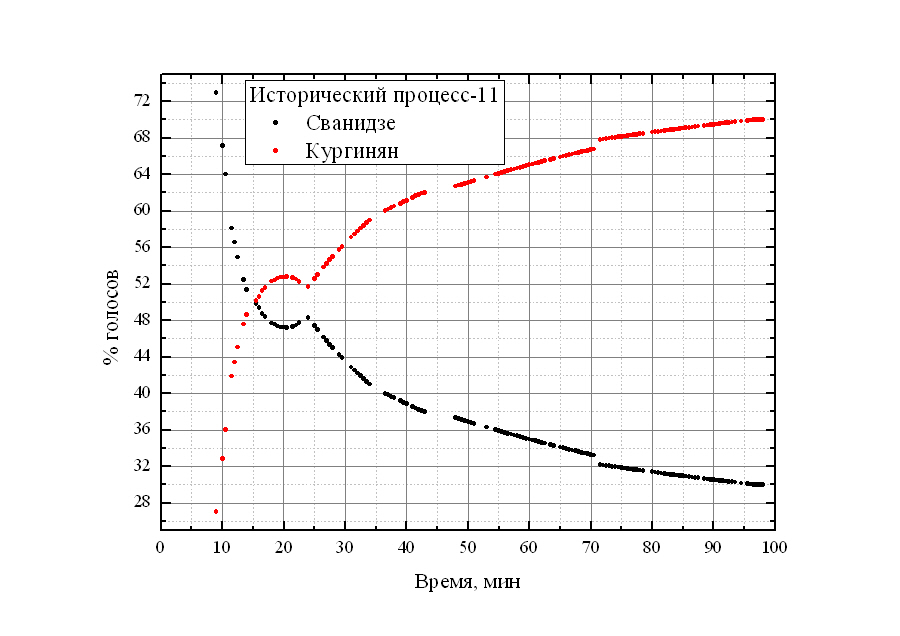 Вброс делали. Можно считать это доказанным фактом. Никакие другие объяснения такого резкого спада частоты голосований за сванидзе посто невозможны. Причем четко после перерыва - как отрезало! Если бы сторонники голосовали, то они бы голосовали в течение всей передачи, а тут - картина совсем другая. Смотрите сами: ![]() Чудесный график! |