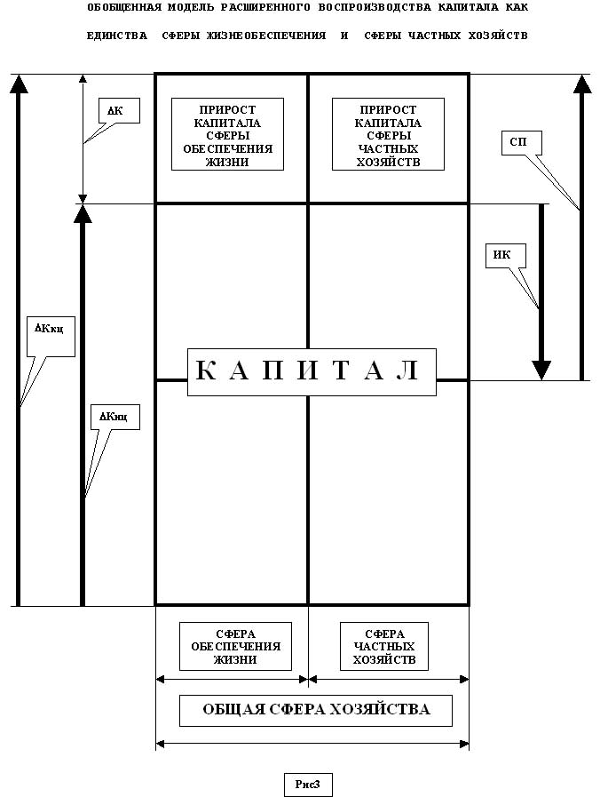 Поскольку человеческое общество в качестве капитала представляет собой единство связанных между собой производственных единиц, предприятий, то, используя категориальную пару общее-частное, можно выделить две качественно различные сферы производства: сферу обеспечения жизни и сферу частных хозяйств. Как следует из названия, сфера обеспечения жизни отвечает за обеспечение сохранения жизни частных членов общества, их объединений и общества в целом. Все частные члены общества, их объединения и, общество в целом, решая свои частные проблемы, тем не менее, опираются на систему обеспечения жизни. Объединив всё вместе - мы получаем ОБЪЁМНУЮ МОДЕЛЬ РАСШИРЕННОГО ВОСПРОИЗВОДСТВА КАПИТАЛА КАК ЕДИНСТВА ВСЕХ ОСНОВНЫХ ФАКТОРОВ ПРОИЗВОДСТВА, СФЕРЫ ЖИЗНЕОБЕСПЕЧЕНИЯ И СФЕРЫ ЧАСТНЫХ ХОЗЯЙСТВ. См. рис. 3 рис. 4 рис. 5 (Продолжение следует) Сообщение отредактировал Евсеев Борис - 10.9.2010, 1:33 |